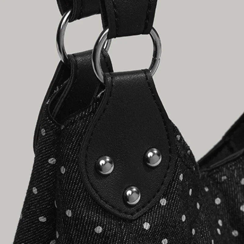 🎨 Vintažinis akademinis taškuotas stilius – klasikinis juodai baltas taškuotas raštas + nailono medžiaga, universalus